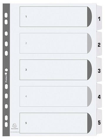 Regiszter karton Exacompta A/4 5 részes fehér Méret: A/4 Kiváló minőségű fehér karton elválasztólapok, laminált fülekkel Alapanyag: 160gr-os karton Előre lyukasztott, így lefűzhető mappába vagy dossziéba FSC minősítéssel rendelkező termék