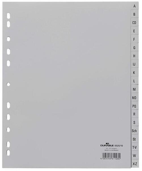 - szürke színű regiszter - nagyméretű téglalapok az előlapon a tartalom feltüntetésére - A-Z felirattal rendelkező regiszter fülek a dokumentumok gyors eléréséhez - megerősített lefűzőrész az előlapon - hagyományos, 11-lyukú...