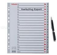 Színes, 10 részes, feliratozott, vonalazott elválasztólap. Újrahasznosított, 230 grammos karton alapanyagból készült. Mérete: 240 x 300 mm. A4-es iratokhoz, 11 lefűzőlyukkal 100 db lap / csomag .