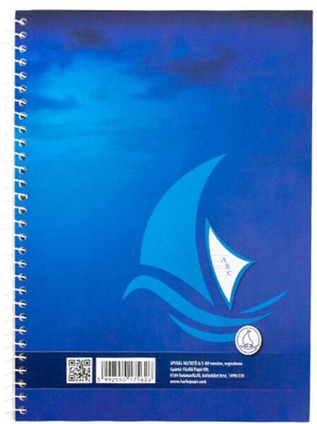 A/5-ös méretű, jobb oldalon regiszterezett spirálfüzet, a magyar szabványnak megfelelő lineatúrákkal és vonzó külső megjelenéssel.