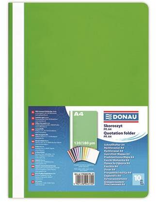 - A4 méretű dokumentumok tárolására - 200 lap lefűzésére alkalmas - 110 polipropilén áttetsző, narancsos fedlap és 180 polipropilén hátlap - feliratozható oldalcsík - 12 színváltozat