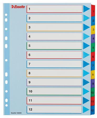 Jellemzői: - Tartalma: 1 db Regiszter, karton, A4, 12 részes, írható előlappal, ESSELTE "Standard", színes- tartós elválasztólap élénk színkombinációkban - Újrahasznosított, Blue Angle minősítéssel rendelkező karton alapanyag - Nagyméretű téglalapok az előlapon a tartalom feltüntetésére - Megerősített lefűzőrész az előlapon - Hagyományos, 11-lyukú lefűzőrész -