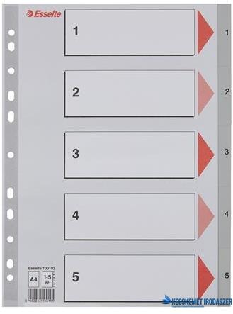 - szürke színű regiszter - nagyméretű téglalapok az előlapon a tartalom feltüntetésére - hagyományos, 11-lyukú lefűzőrész - 0,12 mm vastag PP alapanyag - megerősített lefűzőrész az előlapon - 1-5 felirattal rendelkező regiszter...