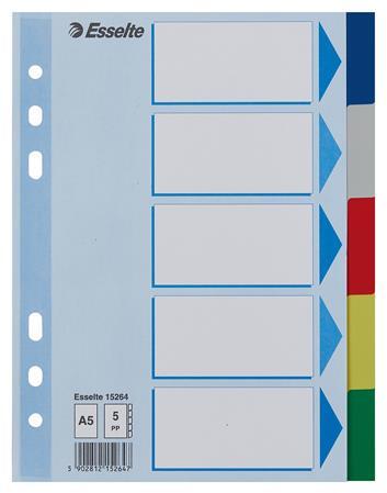 - elválasztólap visszafogott színkombinációkban - nagyméretű téglalapok az előlapon a tartalom feltüntetésére - megerősített lefűzőrész az előlapon - 5 színes fül a könnyű rendszerezéshez - hagyományos, 6-lyukú lefűzőrész minden A5 méretű iratrendezőhöz - 0,12 mm vastag PP alapanyag - műanyaggal megerősített lefűzhető széllel - méret: 163 x 210 mm Gyártó/el