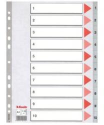 kiváló minőségű PP regiszter számozott fülekkel a dokumentumok gyors eléréséhez felhasználható iratrendezőkben, gyűrűskönyvekben hagyományos , 11-lyukú lefűzőrész alapanyaga 0,12 mm vastag PP fólia beosztás: 1-10 szín: szürke méret: A/4