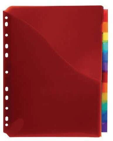 Minden elválasztónak van egy zsebe a tárolt dokumentumok felcímkézésére. Fülek címketartókkal a tartalom azonosítására. Üres címkelapot tartalmaz.