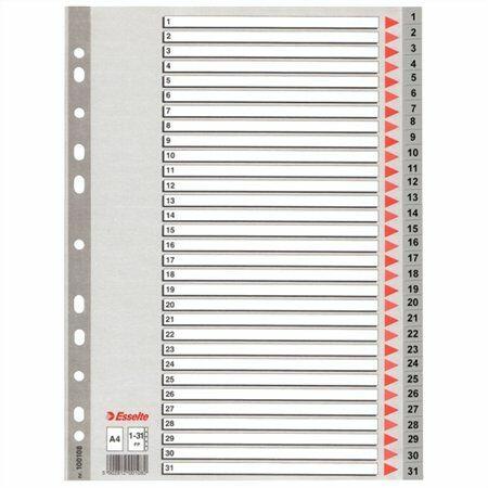 Regiszter, laminált karton, A4 Maxi, 1-31, újraírható, ESSELTE - E100210 - Laminált regiszterek - - többször használható regiszter élénk színkombinációkban - újraírhatő előlap nagyméretű téglalapokkal a tartalom feltüntetésére - újraírható, karton regiszt