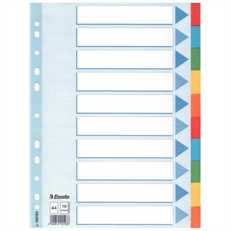 Színalapú igen Számalapú Nem Méret A4 Anyag karton Szín színes Újrahasznosított Igen - tartós elválasztólap élénk színkombinációkban - újrahasznosított, Blue Angle minősítéssel rendelkező karton alapanyag - nagyméretű téglalapok az előlapon a tartalom feltüntetésére - megerősített lefűzőrész az előlapon - hagyományos, 11-lyukú lefűzőrész - 10 színes fül a