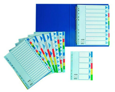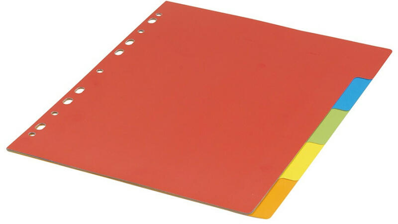 - lefűzött dokumentumok kategorizálására - színes - újrahasznosított, 250 g/m2 kartonból készült - mikroperforált fülek - 4 lefűzőlyuk - méret: 235x300 mm