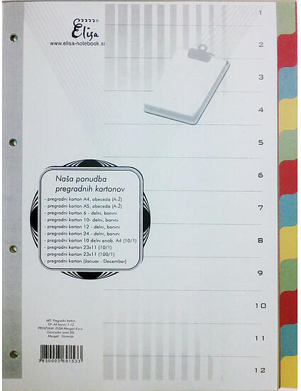 Segítség a rendszerezésben! -színes elválasztócsík, mely 190 g/m2 kartonból készül -lefűzött dokumentumok kategorizálására -az elválasztócsíkon 4 lefűzőlyuk van, így vízszintes vagy függőleges irányban is használható (lyukak távolsága 80 mm) -méret: 235x105 mm