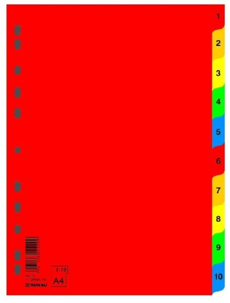 11 lefűzőlyukkal ellátott regiszter 1-10-ig számozva, 10 színben a dokumentumok áttekinthetőségéhez iratrendezőkben, gyűrűskönyvekben.
