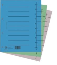 - lefűzött dokumentumok kategorizálására - színes elválasztólapok - újrahasznosított, 250 g/m2 kartonból készült - 100 db/csomag - 4 lefűzőlyuk - méret: 235x300 mm