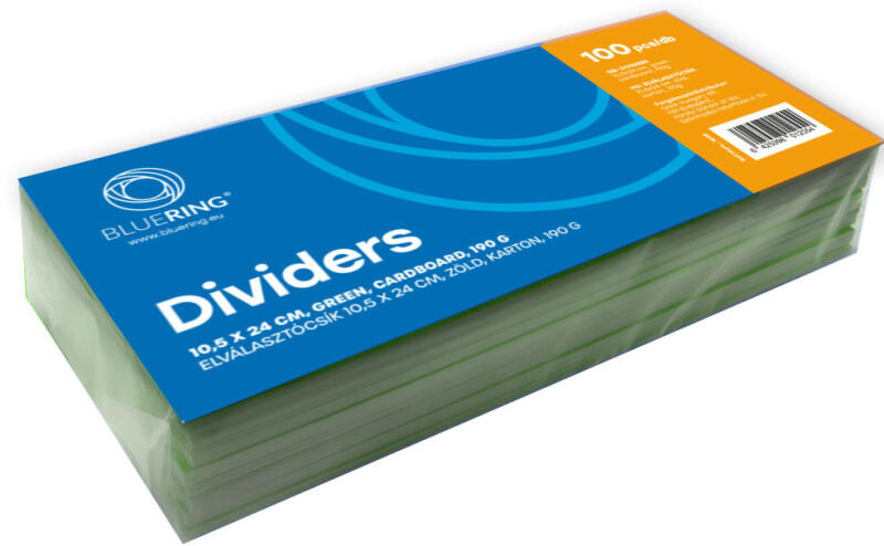Elválasztócsík, karton 190g. 10,5x24cm, 100 db/csomag, Bluering® kék Színes elválasztócsíkok karton alapanyagból dokumentumok elválasztására. A kép illusztráció. Az ár egy csomagra érvényes.