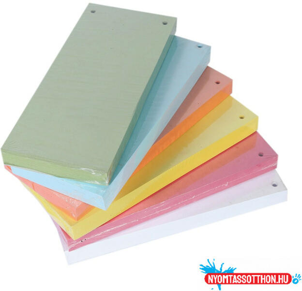 Segítség a rendszerezésben! -színes elválasztócsík, mely 190 g/m2 kartonból készül -lefűzött dokumentumok kategorizálására -az elválasztócsíkon 4 lefűzőlyuk van, így vízszintes vagy függőleges irányban is használható (lyukak távolsága 80 mm) -méret: 235x105 mm