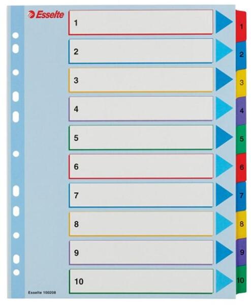 - elválasztólap visszafogott színkombinációkban - nagyméretű téglalapok az elõlapon a tartalom feltüntetésére - 10 színes fül a könnyű rendszerezéshez - megerõsített lefűzõrész az elõlapon - hagyományos, 11-lyukú lefűzõrész - 0,12 mm vastag PP alapanyag - az A4+ méretű elválasztólapok szélesebbek a lefűzhetõ tasakoknál, így segítségükkel az iratrendezõbe le