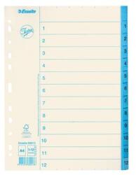 Regiszter, karton, A4, 1-12, ESSELTE "Mylar" - tartós regiszter élénk színkombinációkban - nagyméretű téglalapok az előlapon a tartalom feltüntetésére - megerősített lefűzőrész az előlapon - erős, tartós, laminálással megerősített regiszter fülek - hagyományos, 11-lyukú lefűzőrész - 1-12 felirattal rendelkező regiszter fülek a dokumentumok gyors eléréséhez - er