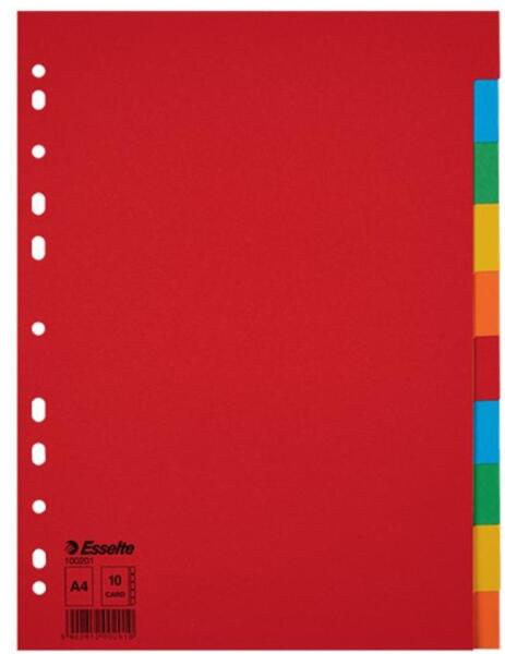 Tartós elválasztólap élénk színkombinációkban. Újrahasznosított karton alapanyag. 10 színes fül a könnyű rendszerezéshez. Hagyományos, 11-lyukú lefűzőrész. A4 formátum. Erős, 160 g-os karton alapanyag. Blue Angel minősített, újrahasznosított karton alapanyag.