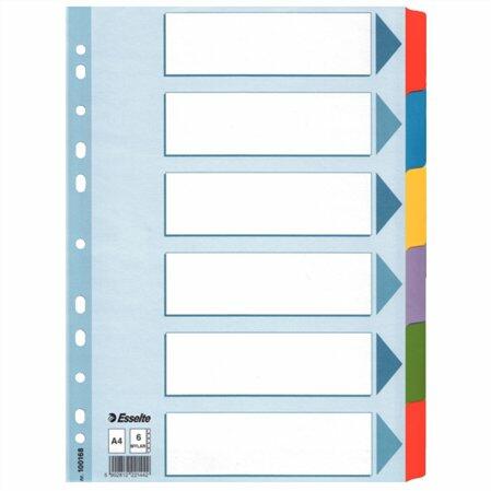 - tartós elválasztólap élénk színkombinációkban - 6 színes fül a könnyű rendszerezéshez - hagyományos, 11-lyukú lefűzõrész - Blue Angel minõsített, újrahasznosított karton alapanyag - erõs, 160 g-os karton alapanyag