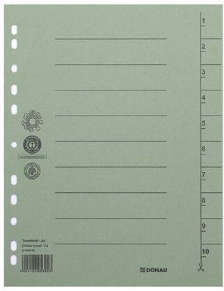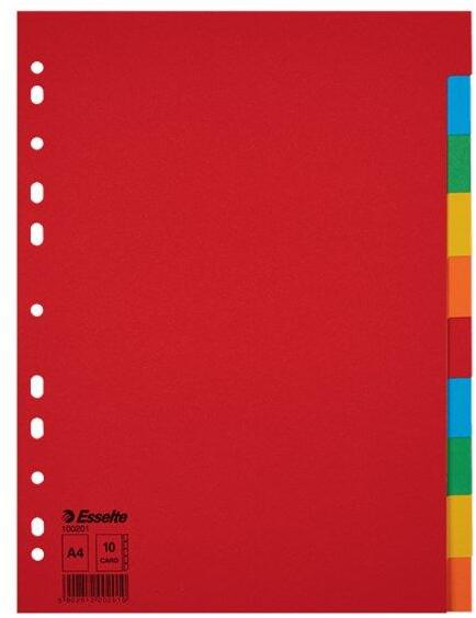 Tartós elválasztólap élénk színkombinációkban. Újrahasznosított karton alapanyag. 10 színes fül a könnyű rendszerezéshez. Hagyományos, 11-lyukú lefűzõrész. A4 formátum. Erõs, 160 g-os karton alapanyag. Blue Angel minõsített, újrahasznosított karton alapanyag.
