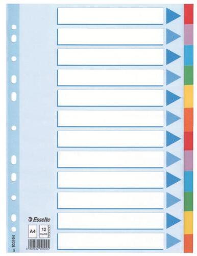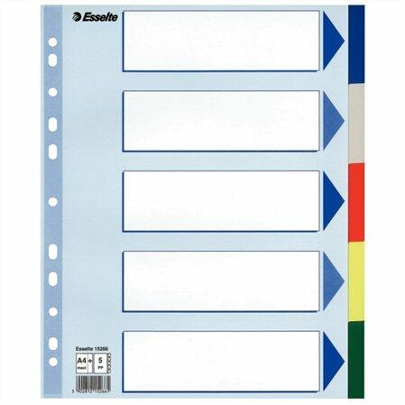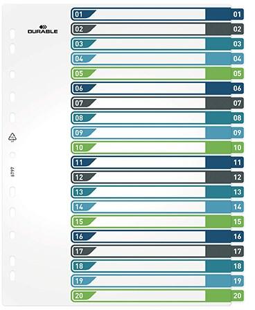 - elválasztólap visszafogott színkombinációkban - nagyméretű téglalapok az előlapon a tartalom feltüntetésére - 0,12 mm vastag PP alapanyag - hagyományos, 11-lyukú lefűzőrész - 5 színes fül a könnyű rendszerezéshez - megerősített lefűzőrész az előlapon - az A4+ méretű elválasztólapok szélesebbek a lefűzhető tasakoknál, így segítségükkel az iratrendezőbe lef