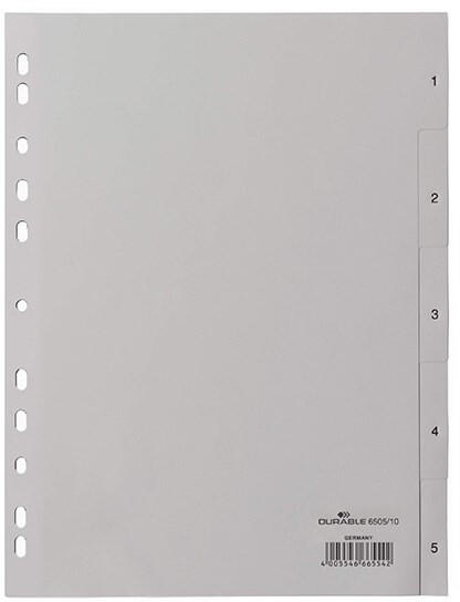 Regiszter DURABLE műanyag nyomtatott A/4 1-5 részes szürke