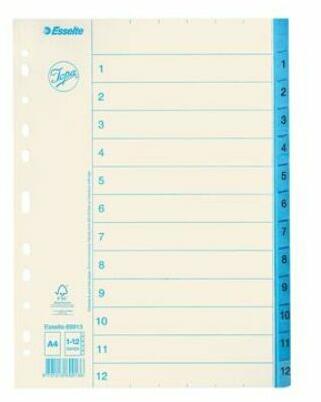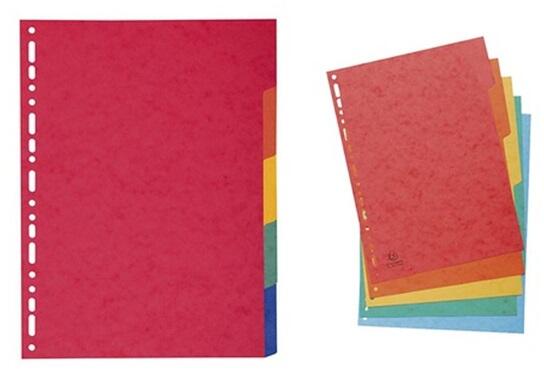 Színalapú igen Számalapú Nem Méret A4 Anyag karton Szín színes Újrahasznosított Igen - tartós elválasztólap élénk színkombinációkban - újrahasznosított, Blue Angle minősítéssel rendelkező karton alapanyag - nagyméretű téglalapok az előlapon a tartalom feltüntetésére - megerősített lefűzőrész az előlapon - hagyományos, 11-lyukú lefűzőrész - 6 színes fül a