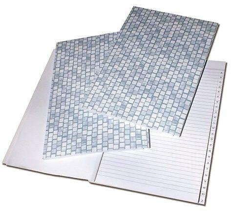 Regiszteres füzet: Karton borítás, 80 lapos. A/5-ös méret. Belív: Famentes ofszet papír. Jobb oldalon betűregiszter. Ragasztott. Vonalas.