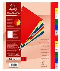 Exacompta A4 12 részes színes karton elválasztólap - Prémium minőségű elválasztólapok - Kiválóan alkalmas az iratok rendszerezésére - Környezetbarát 225 g/m2-es grammsúlyú papírból készült - FSC minősítéssel rendelkező termék - Méret: A/4 maxi (242 x 297 mm)