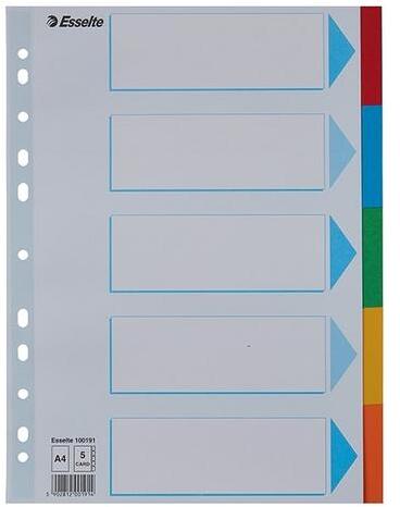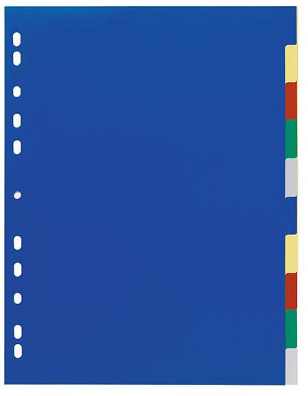 - elválasztólap visszafogott színkombinációkban - nagyméretű téglalapok az előlapon a tartalom feltüntetésére - 0,12 mm vastag PP alapanyag - hagyományos, 11-lyukú lefűzőrész - 5 színes fül a könnyű rendszerezéshez - megerősített lefűzőrész az előlapon - az A4+ méretű elválasztólapok szélesebbek a lefűzhető tasakoknál, így segítségükkel az iratrendezőbe lef