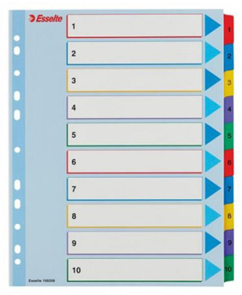 - lefűzött dokumentumok kategorizálására - színes elválasztólapok - újrahasznosított, 250 g/m2 kartonból készült - 100 db/csomag - 4 lefűzőlyuk - méret: 235x300 mm Kiszerelés: 100 db/csom