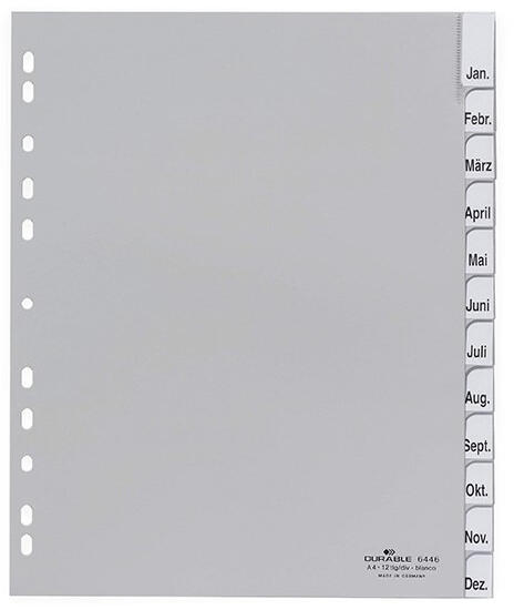 Regiszter DURABLE műanyag A/4 maxi Jan-Dec 12 részes szürke
