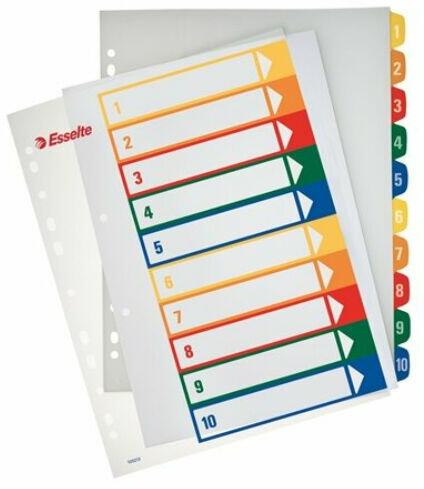 - többször használható regiszter élénk színkombinációkban- nyomtatható tárgymutató az egyedi igényekhez- a sablon a www. esselte. com/easyprint oldalról tölthető le- az A4+ méretű regiszterek szélesebbek a lefűzhető tasakoknál, így segítségükkel az iratrendezőbe lefűzött tasakok is könnyen rendszerezhetők- erős és tartós polipropilén alapanyag - nyomtató segíts