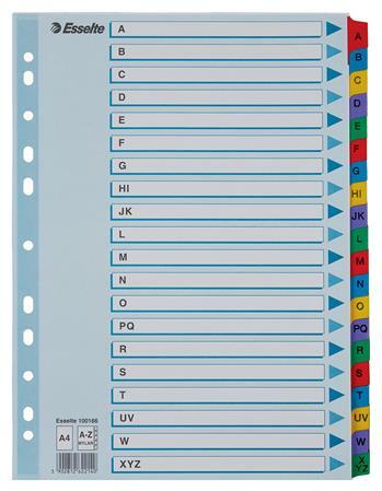 Regiszter, karton, A4, A-Z, ESSELTE "Mylar" - E100166 - Karton regiszterek - - tartós regiszter élénk színkombinációkban - nagyméretű téglalapok az előlapon a tartalom feltüntetésére - megerősített lefűzőrész az előlapon - erős, tartós, laminálással meger