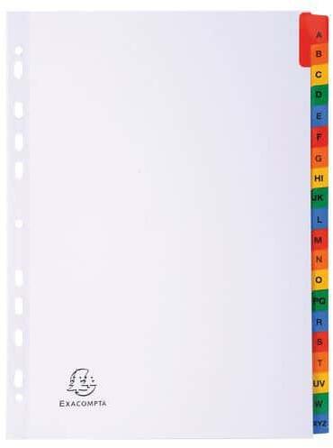 Elválasztók színes ábécé könyvjelzőkkel. Műanyag bevonattal megerősített lyukak és többszínű könyvjelzők. Az ábécés könyvjelzők mindkét oldalára nyomtatva az egyes részek közötti gyorsabb tájékozódás érdekében. 11 univerzális lyukasztás minden típusú irattartóhoz.