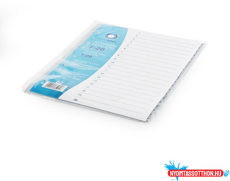 Regiszter műanyag 1-20 Bluering® szürke Minőségi PP alapanyagból készült regiszter iratok kategorizálásához, praktikus rendszerezéséhez. 11 lefűzűlyukkal, A4 méretű iratokhoz.