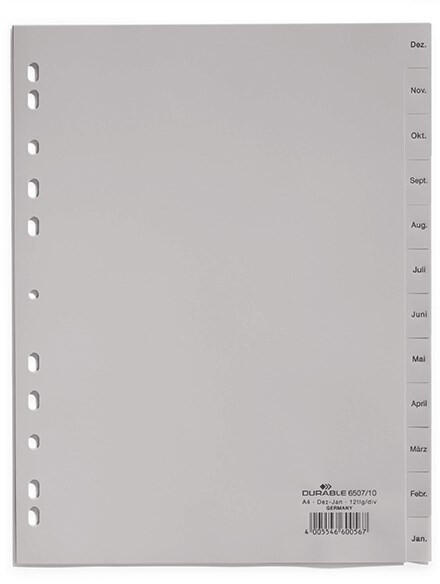 Regiszter DURABLE műanyag nyomtatott A/4 Jan-Dec 12 részes szürke A
