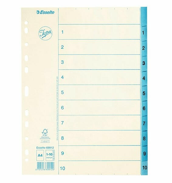 Regiszter ESSELTE A/4 karton 1-10 Egyszerű megoldás az iratok jobb és pontosabb tárolása és előkeresése érdekében.