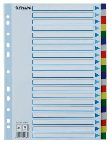 - elválasztólap visszafogott színkombinációkban- nagyméretű téglalapok az előlapon a tartalom feltüntetésére- 20 színes fül a könnyű rendszerezéshez - megerősített lefűzőrész az előlapon - hagyományos, 11-lyukú lefűzőrész- 0,12 mm vastag PP alapanyag