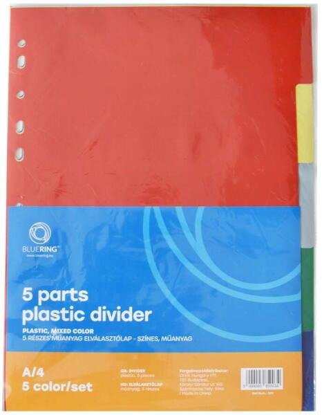 BLUERING 850034 5 részes színes műanyag Elválasztólap Minőségi PP alapanyagból készült elválasztólap iratok kategorizálásához, praktikus rendszerezéséhez. 11 lefűzűlyukkal, A4 méretű iratokhoz.