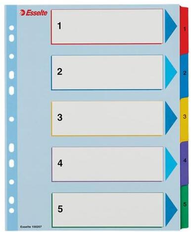 Színalapú igen Számalapú Nem Méret A4 Anyag karton Szín színes Újrahasznosított Igen - tartós elválasztólap élénk színkombinációkban - 5 színes fül a könnyű rendszerezéshez - hagyományos, 11-lyukú lefűzőrész - Blue Angel minősített, újrahasznosított karton alapanyag - erős, 160 g-os karton alapanyag