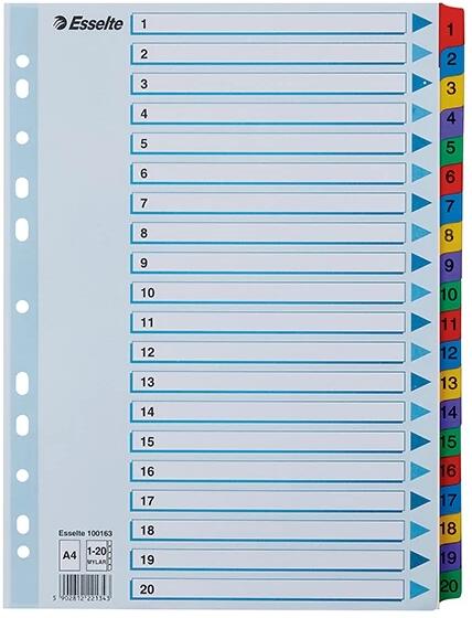 Tartós regiszter élénk színkombinációkban. Nagyméretű téglalapok az előlapon a tartalom feltüntetésére. Erős, tartós, laminálással megerősített regiszter fülek Megerősített lefűzőrész az előlapon 1-20 felirattal rendelkező regiszter fülek a dokumentumok gyors eléréséhez Hagyományos, 11-lyukú lefűzőrész A4 méret Erős, 160 g-os karton alapanyag