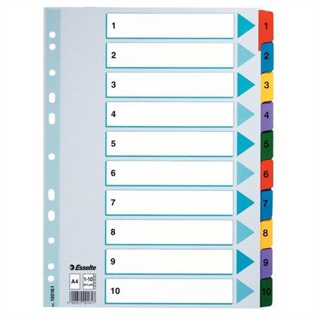 Beosztás 1-10 Anyag karton Méret A4 Szín színes Újrahasznosított Nem - tartós regiszter élénk színkombinációkban - nagyméretű téglalapok az előlapon a tartalom feltüntetésére - megerősített lefűzőrész az előlapon - erős, tartós, laminálással megerősített regiszter fülek - hagyományos, 11-lyukú lefűzőrész - 1-10 felirattal rendelkező regiszter fülek a dokument