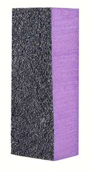 A felületi formára reszelt építőanyag végső íveit, tökéletes idomait ezzel a finomító bufferrel érhetjük el. Szemcsézete kétféle, a 100-as oldalon durvább, a 180-as (feliratos) oldalon pedig extra finomságú. Sorrendiségében is így használjuk: a 180-as reszelővel való munkát kövesse a 100-as oldalon végzett bufferelés, ami eltűnteti a reszelő okozta mikrobarázdákat