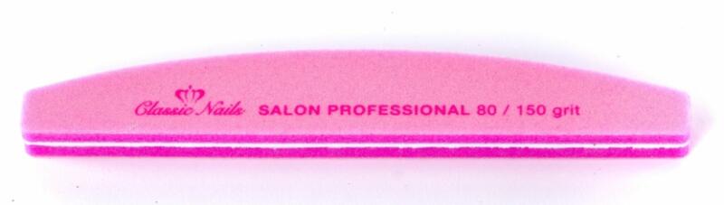 A Classic Nails bufferek mind forma- és színviláguknak, mind a gyártásban alkalmazott új fejlesztésű szemcse felviteli technikának köszönhetően, rendkívül kedveltek a műkörmös- és pedikűrös szakemberek körében. Pink félhold buffer 80/150-es, azaz erős és mérsékelten erős oldalakkal.