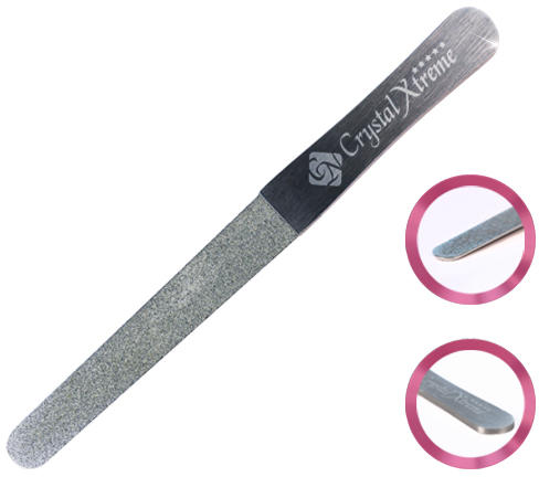 Gyémántporos körömreszelő, műanyag nyéllel. Kiváló eszköz mind szalonokban, mind otthoni használatra, mely megkönnyíti a köröm előkészítését műköröm építés, géllakkozás előtt. Könnyen és gyorsan formázható vele a saját köröm. Mérete: 155 mm