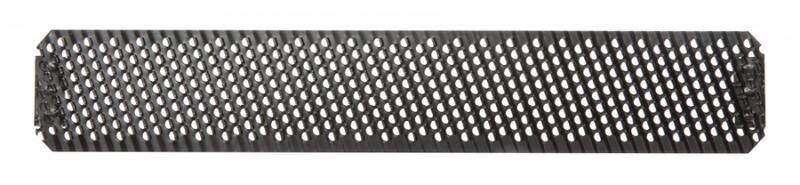acél penge, 250 mm hosszú és 40 mm széles; a penge egyszerű cseréje az integrált pengezárral.