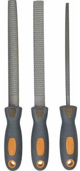 A NEO ráspolykészletben három db 200 mm hosszú ráspoly van, lapos, félkerek és kör keresztmetszettel. Fa csiszolására szolgál. Kiváló minőségű, nagy keménységű T12-es acélötvözetből készül. Az ergonómikus, TPR bevonatú nyél biztosítja a kényelmet és a biztonságot a munkavégzés során. A NEO márka a professzionális igényeket is kielégíti. Ráspoly készlet fá
