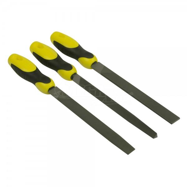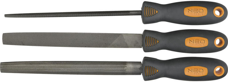 A NEO fémreszelő készletben 3 darab 200 mm hosszú ráspoly van, lapos, félkerek és kör keresztmetszettel. Fémek reszelésére szolgál. Kiváló minőségű, nagy keménységű T12-es acélötvözetből készül. Az ergonómikus, TPR bevonatú nyél biztosítja a kényelmet és a biztonságot a munkavégzés során. A NEO márka a professzionális igényeket is kielégíti.