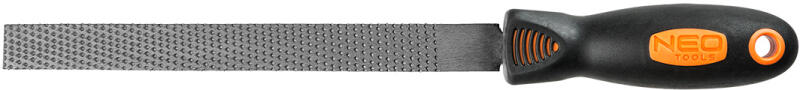 NEO ráspoly, 200 mm hosszú. Fa reszelésére szolgál. Kiváló minőségű, nagy keménységű T12-es acélötvözetből készül. Az ergonómikus, TPR bevonatú nyél biztosítja a kényelmet és a biztonságot a munkavégzés során. A NEO márka a professzionális igényeket is kielégíti.