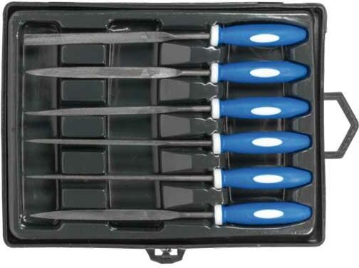 A készlet tartalma: (mindegyikből 1 db) lapos, kézi, kerek, félkerek, háromszög és négyszög reszelő. Két db reszelőnyéllel kiegészítve, PVC tasakban. Megfelel a BS498:1990 és az US Szövetségi Szabványoknak.